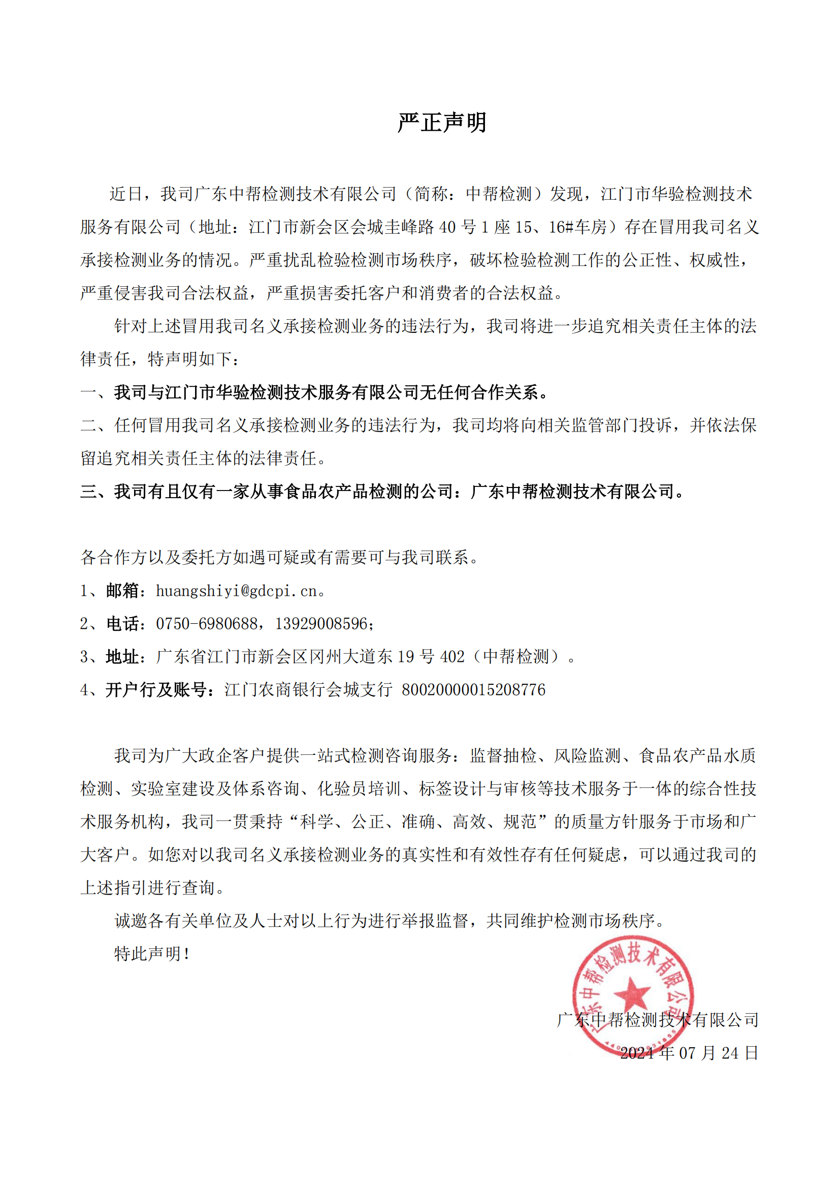 关于警惕不法分子伪造、变造我司检测报告的声明