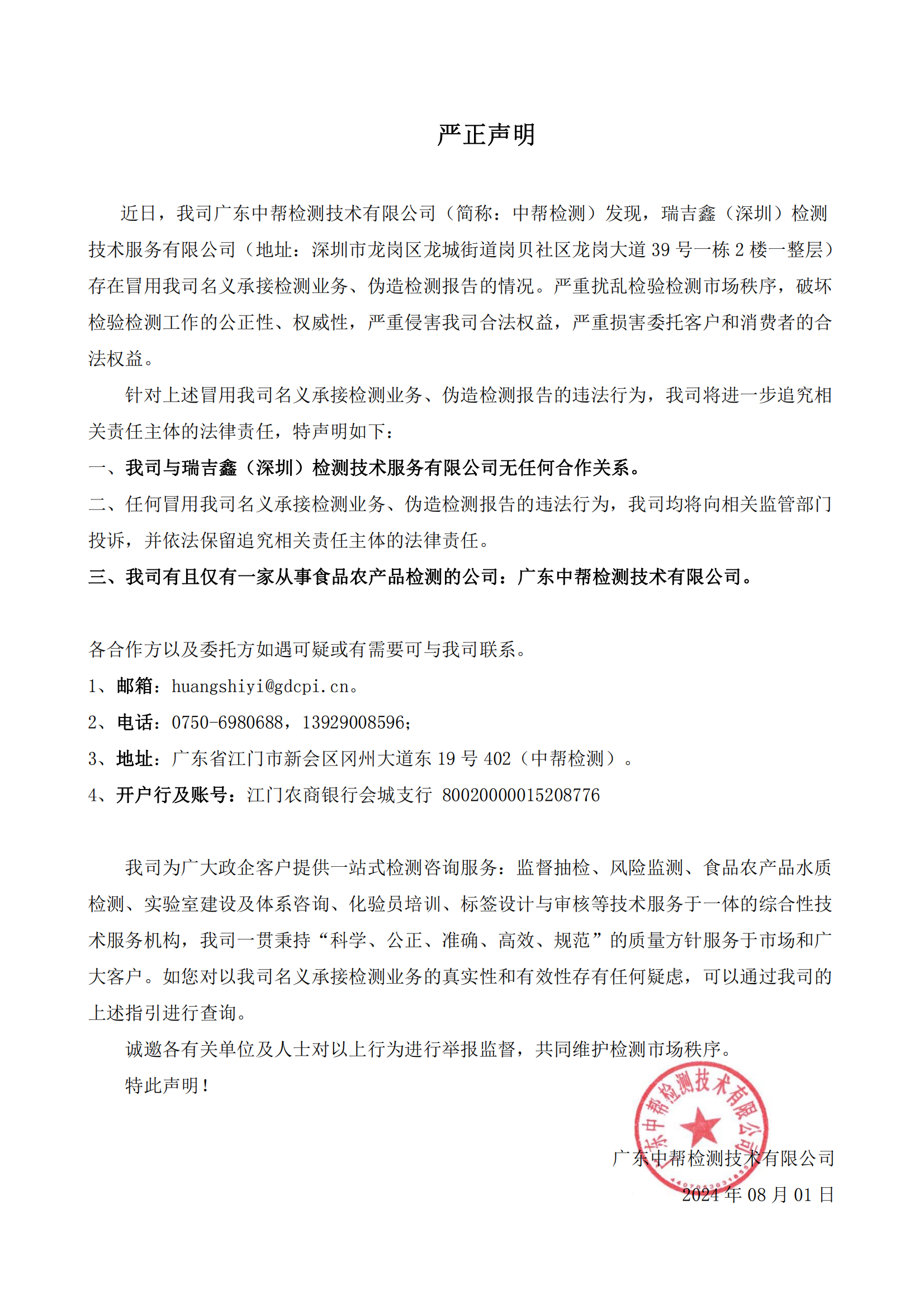 关于瑞吉鑫(深圳)伪造我司检测报告的 严正声明!!!